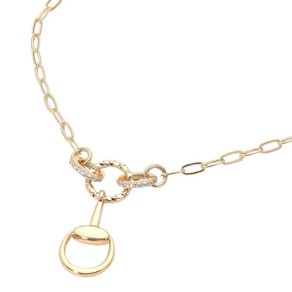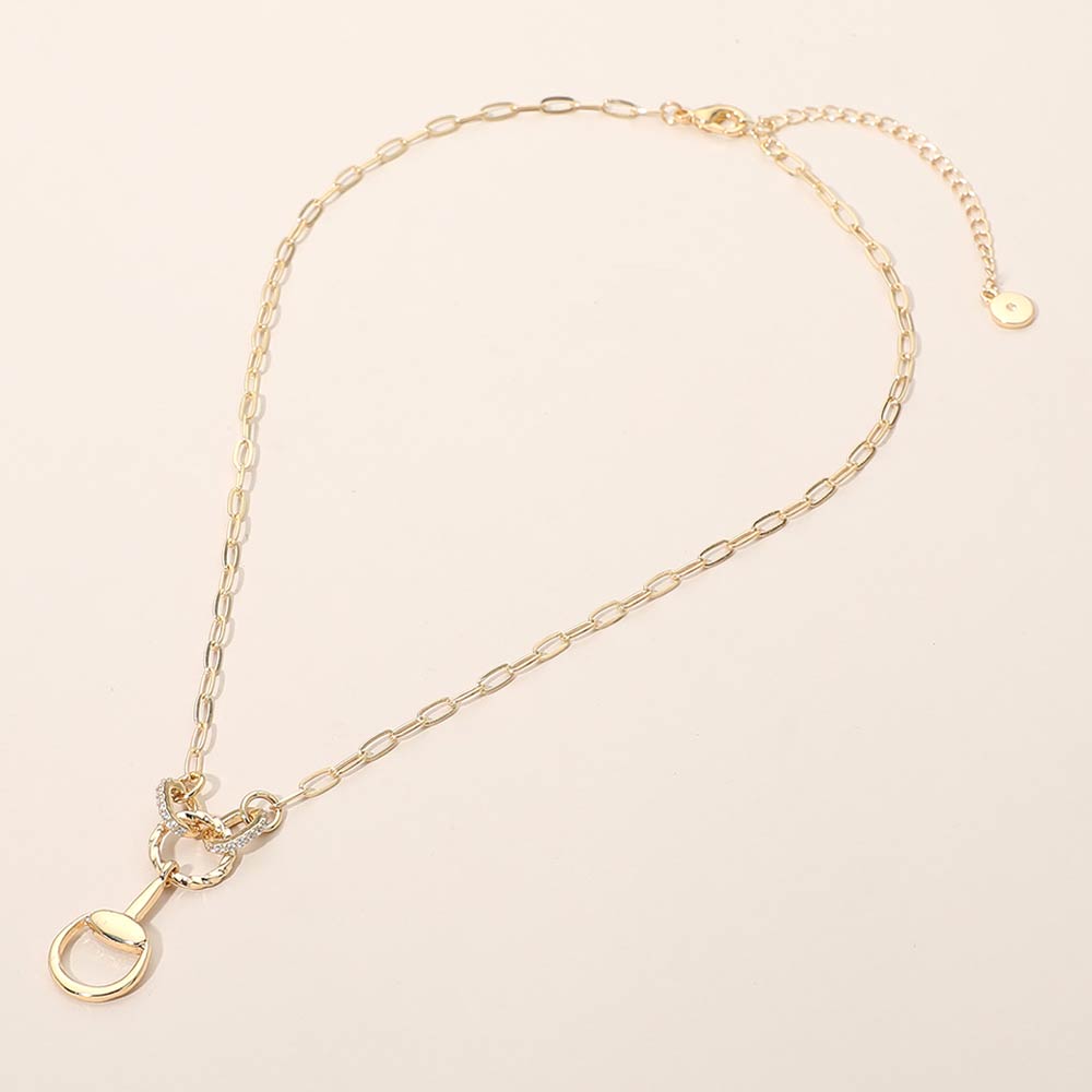 Rhinestone Paved Horseshoe Link Paperclip Chain Necklace