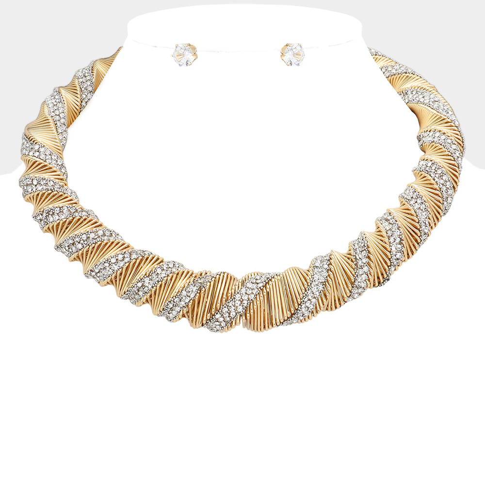 Rhinestone Paved Metal Accordion Twisted Necklace