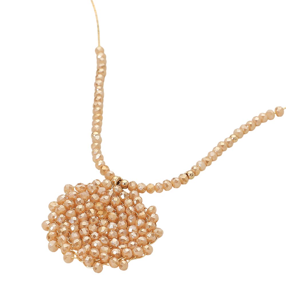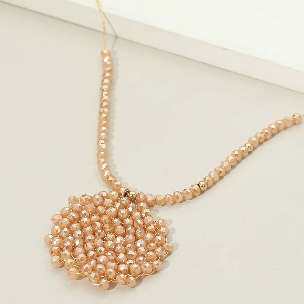 Details • Necklace Size : 16.5" + 3.25" L • Pendant Size : 1.4" X 1.4" • This beaded statement pendant necklace features a detailed round focal design paired with a delicately beaded strand for balanced visual appeal. Created to elevate everyday outfits, it layers beautifully or stands out on its own. A versatile accessory for boutiques seeking stylish, trend-forward pieces with a handcrafted look and timeless wearability. • Lead and Nickel Compliant