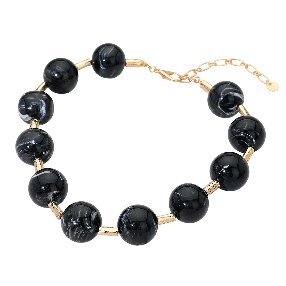 • Add timeless sophistication to your look with this round beaded statement necklace. Featuring polished beads connected by sleek gold accents, it blends classic charm with modern elegance—perfect for elevating both everyday outfits and evening ensembles.