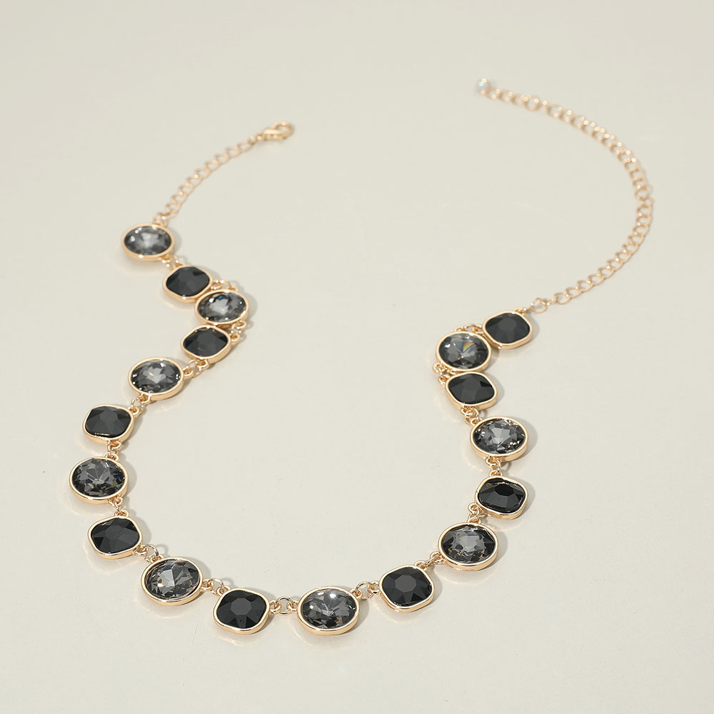 Round Square Stone Bezel Cluster Link Necklace Round Square Stone Bezel Cluster Link Necklace
