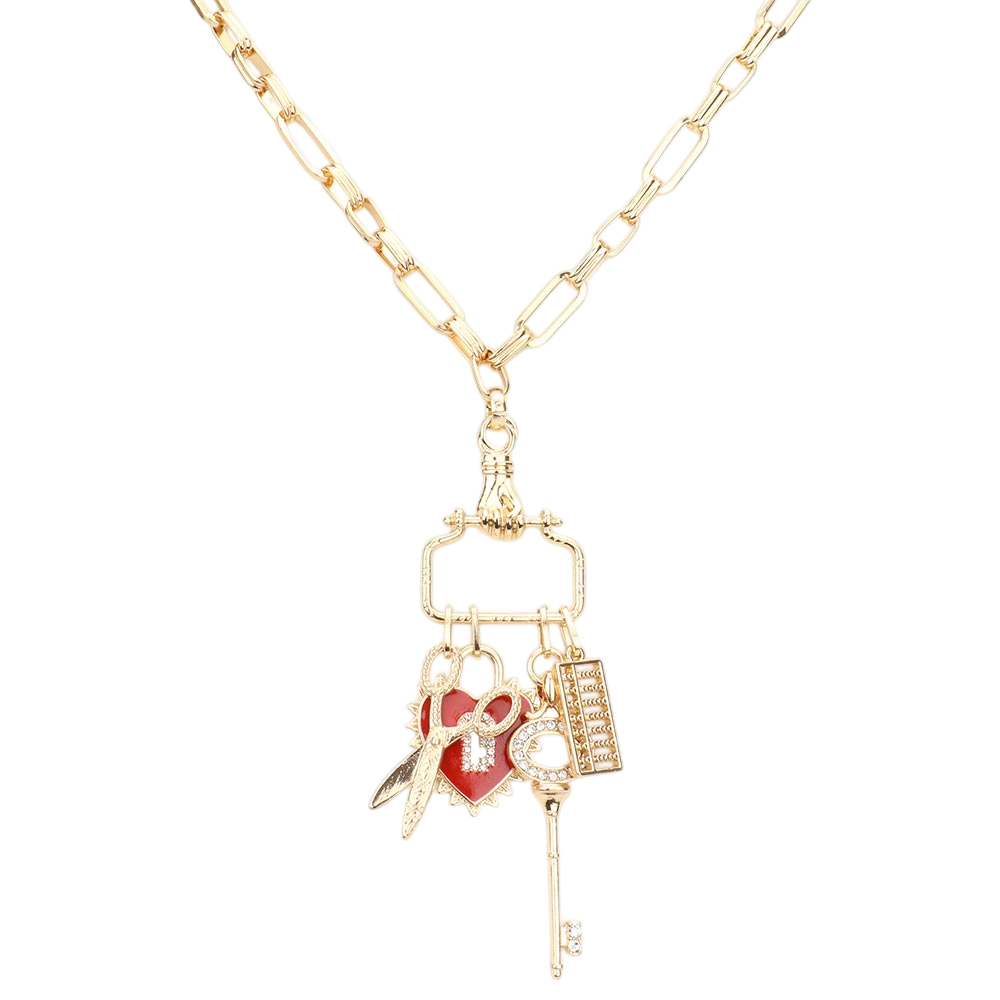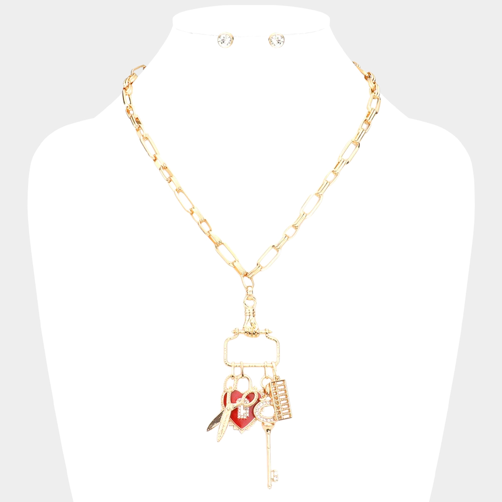 Scissors Heart Key Comb Pendant Necklace