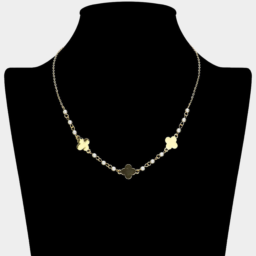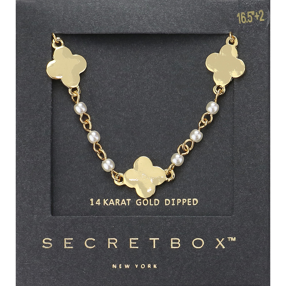 SECRET BOX_14K Gold Dipped Quatrefoil Pearl Link Necklace