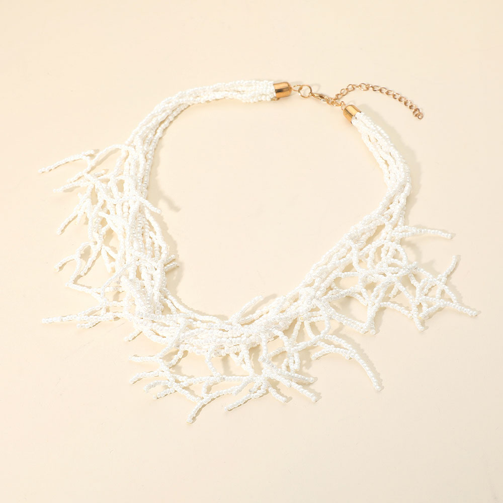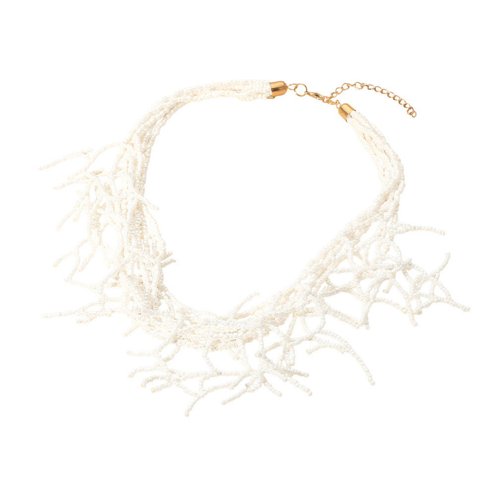 • Elevate any look with this statement beaded coral necklace featuring layered clustered strands and branch-inspired shapes. Includes an adjustable extension chain for a comfortable fit. A bold, artistic accessory perfect for standout styling.