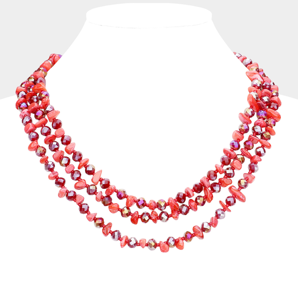 Shell Stone Faceted Beaded Triple Layered Bib Necklace