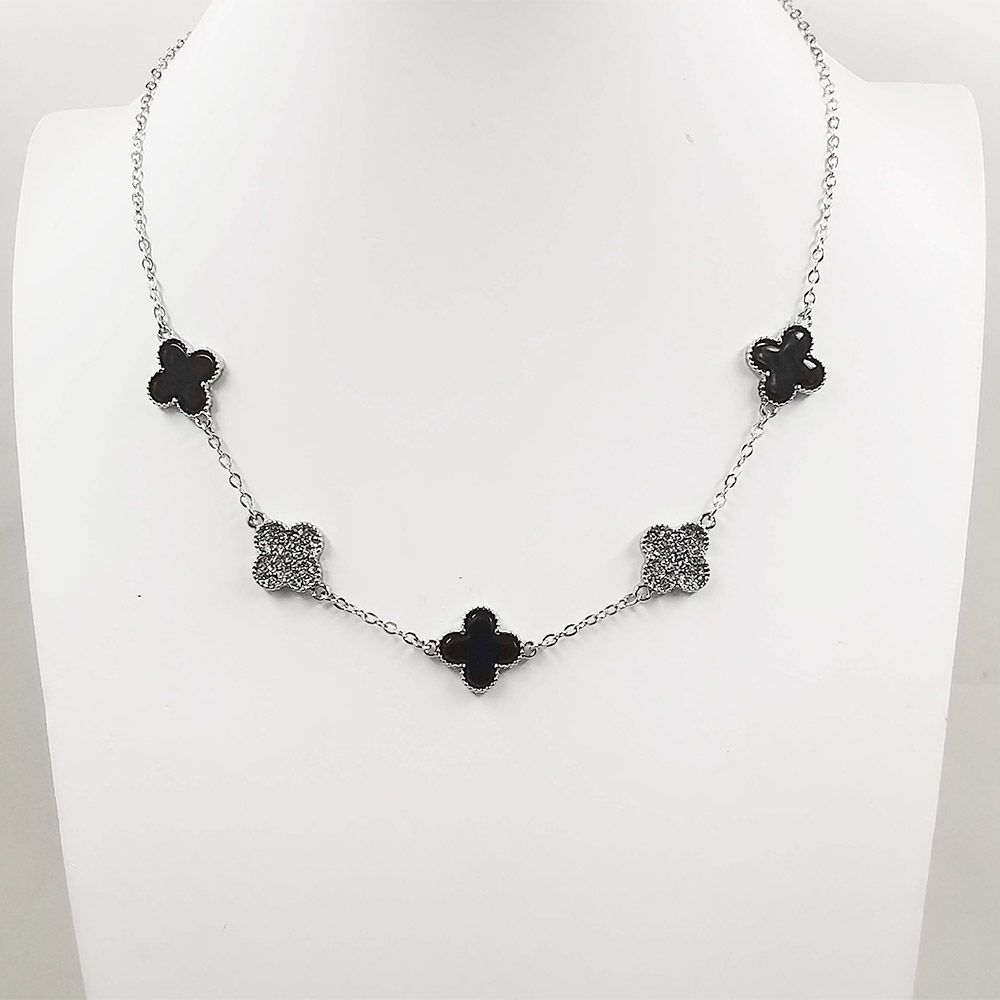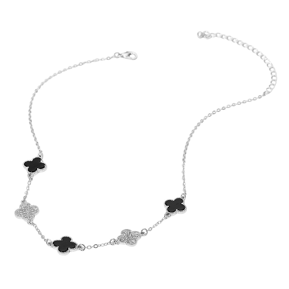 • Add refined elegance to any outfit with this clover charm necklace featuring alternating enamel and crystal-accented charms. Designed with a sleek chain and timeless motif, it’s a versatile piece that complements both casual and dressy looks with effortless sophistication.