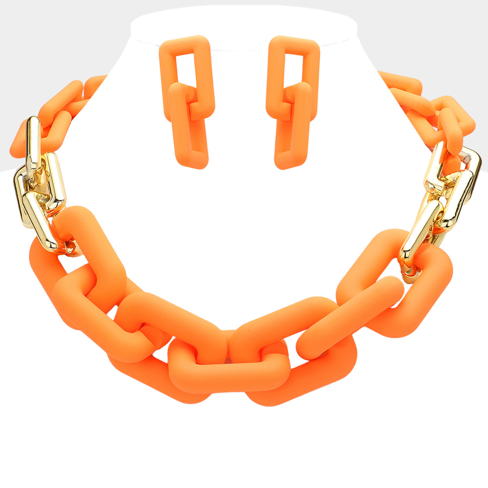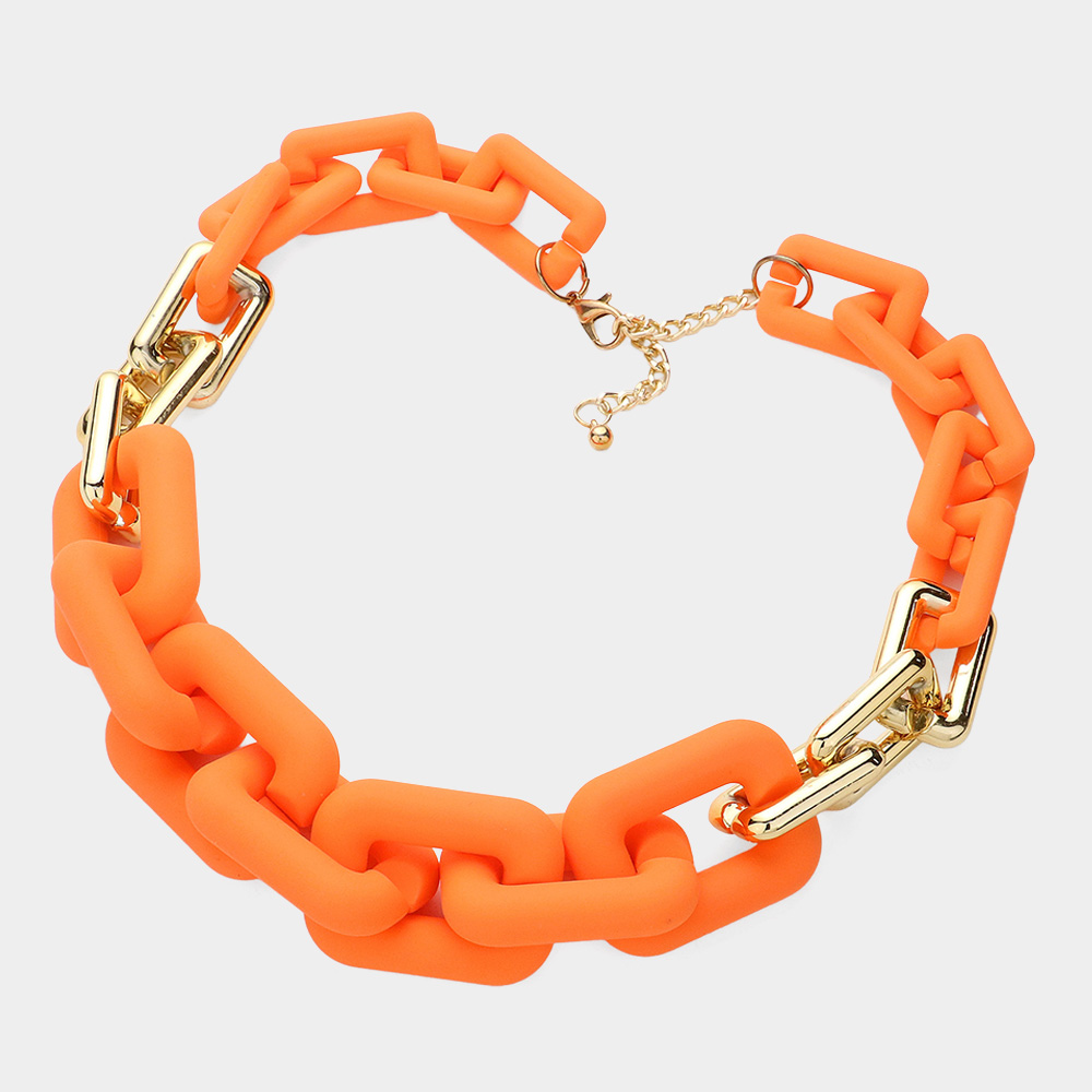 Hammered Metal Cross Pendant Wood Paperclip Chain Layered Necklace