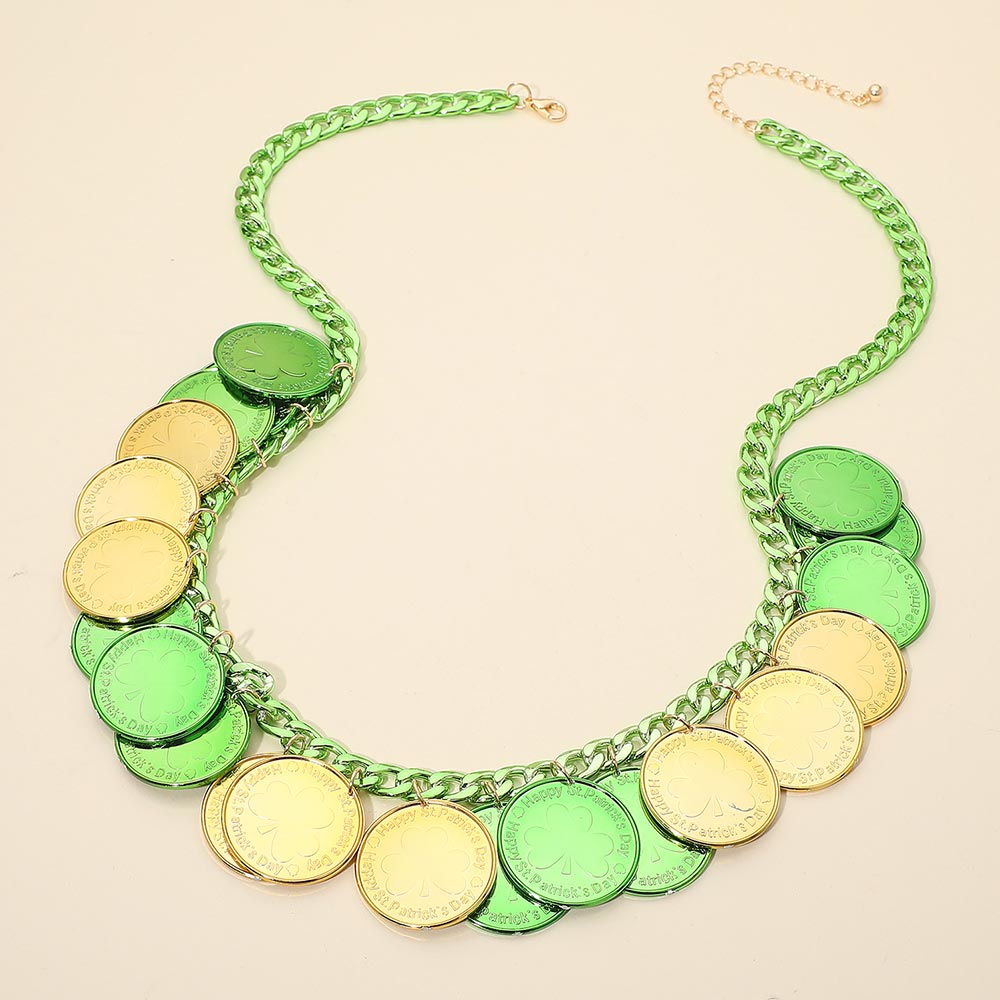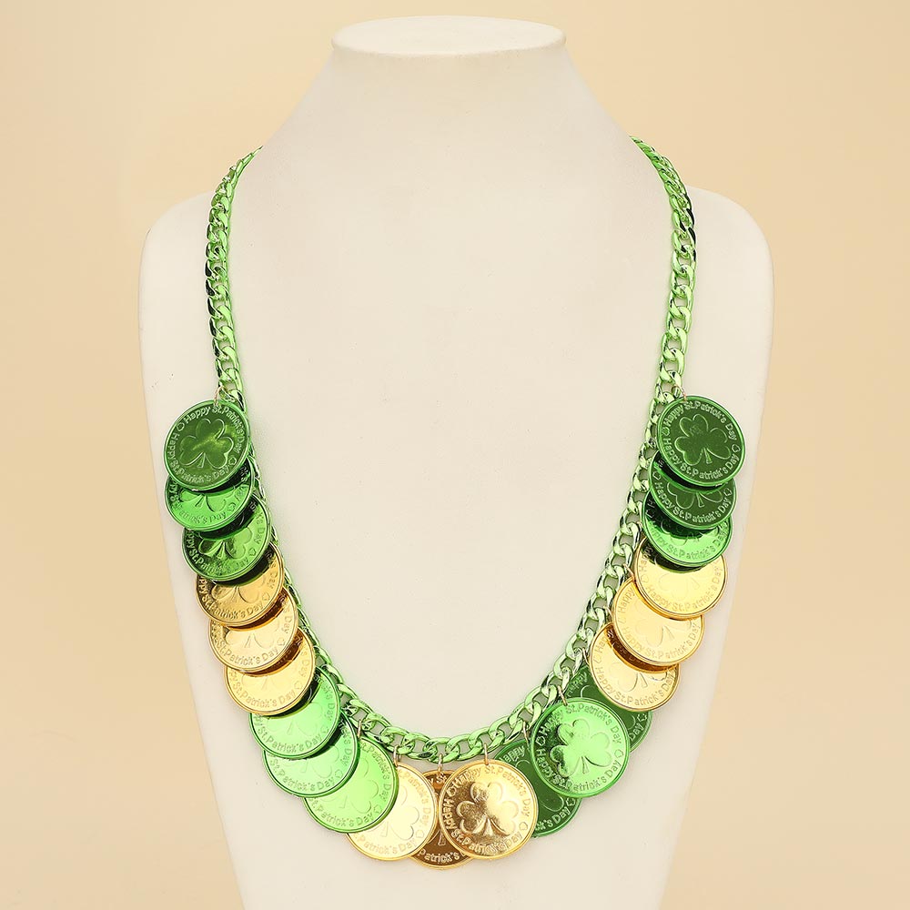 St Patricks Shamrock Luck Coin Embellished Statement Necklace