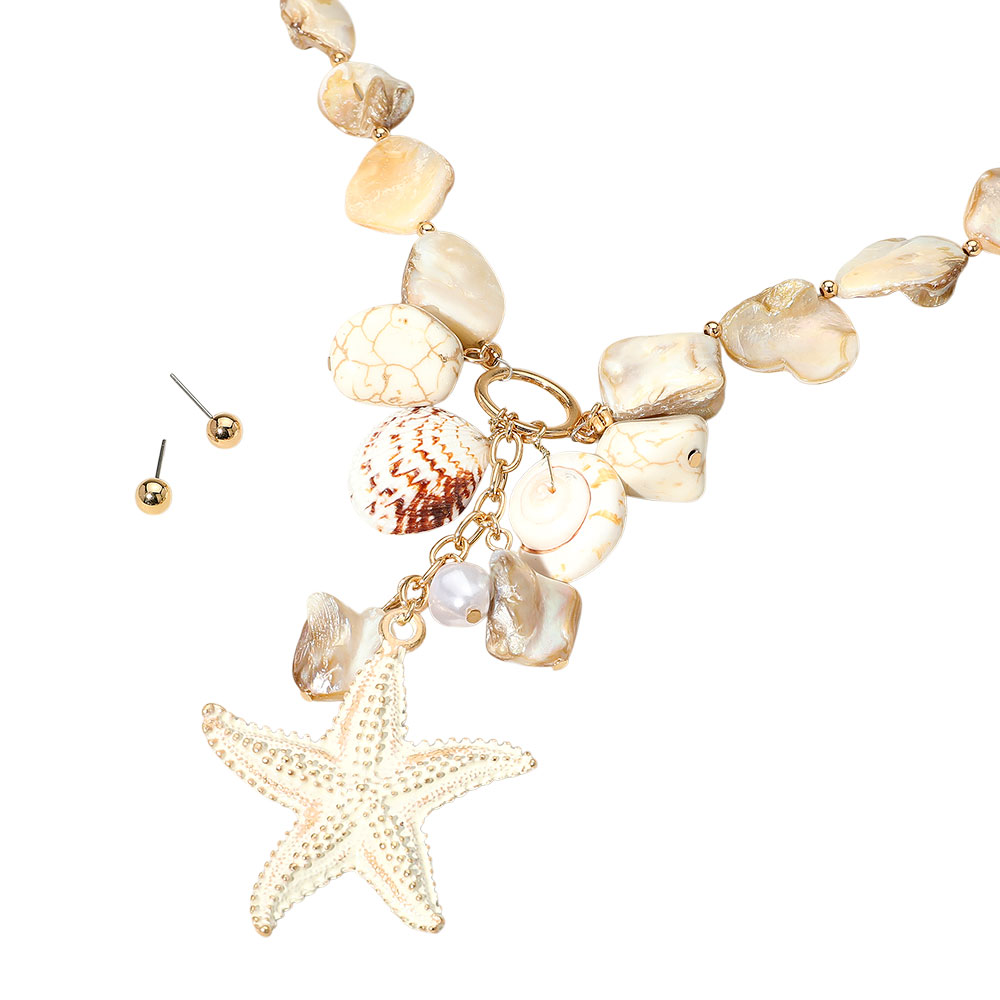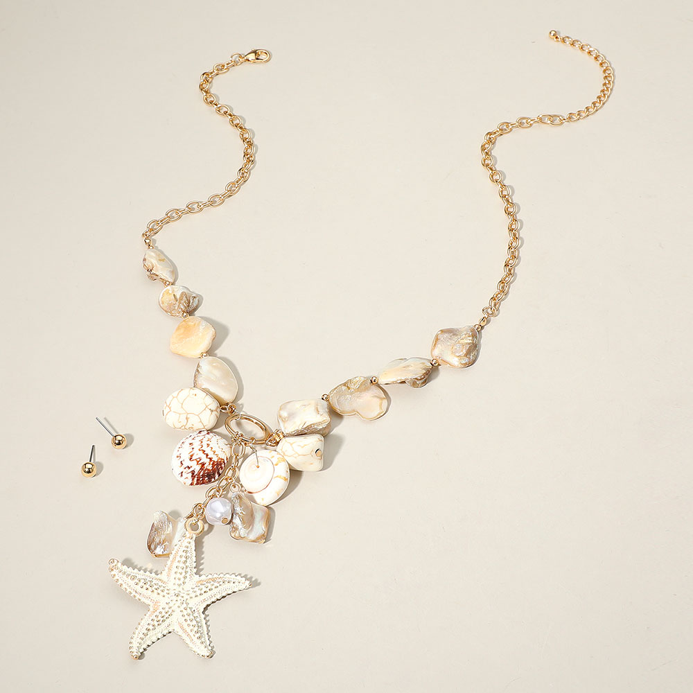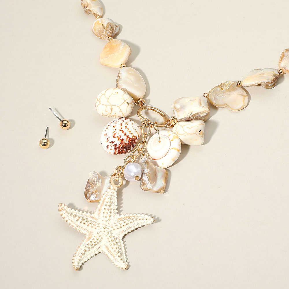 Starfish Pendant Pointed Pearl Natural Stone Charm Statement Necklace