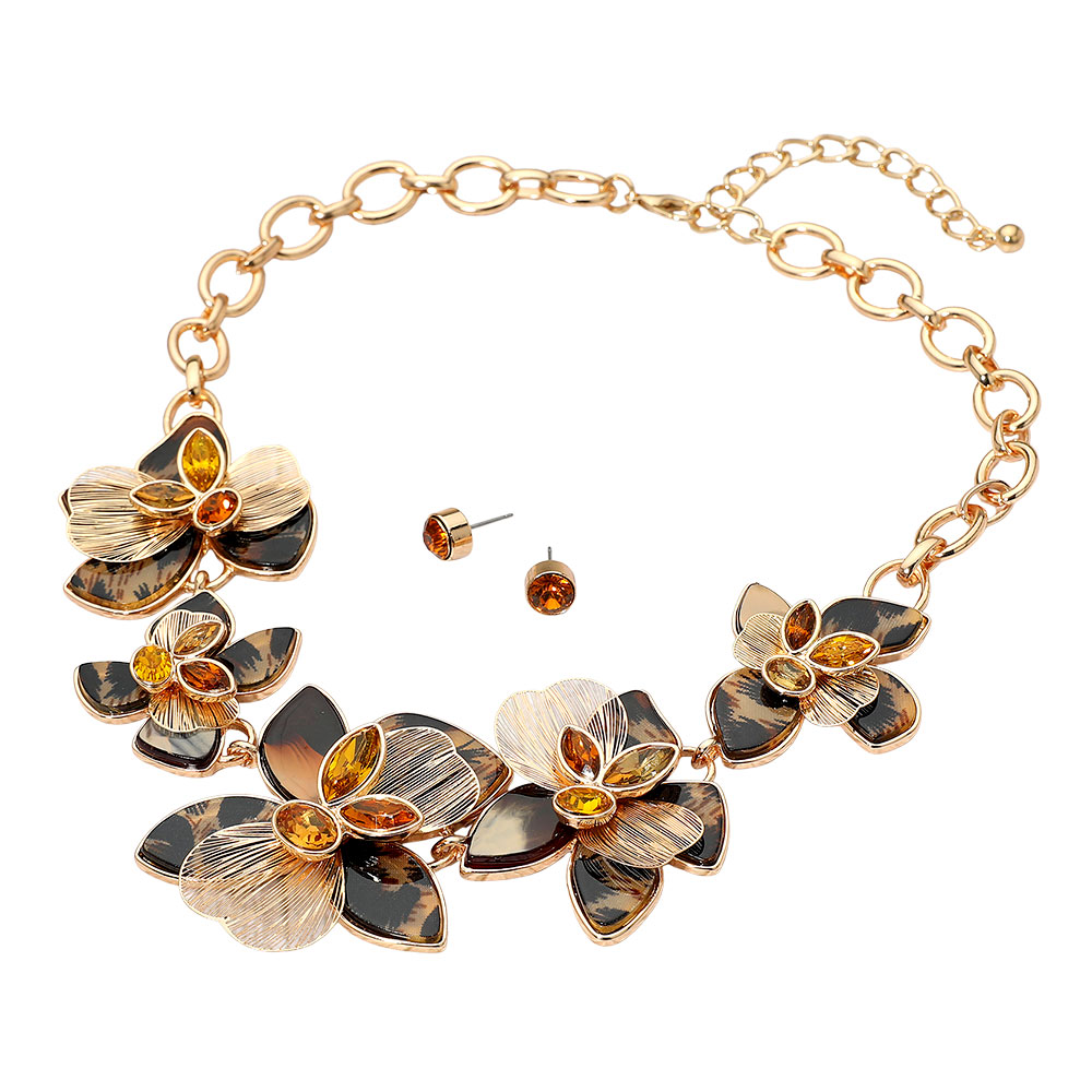 Stone Accent Resin Metal Cutout Floral Link Statement Necklace