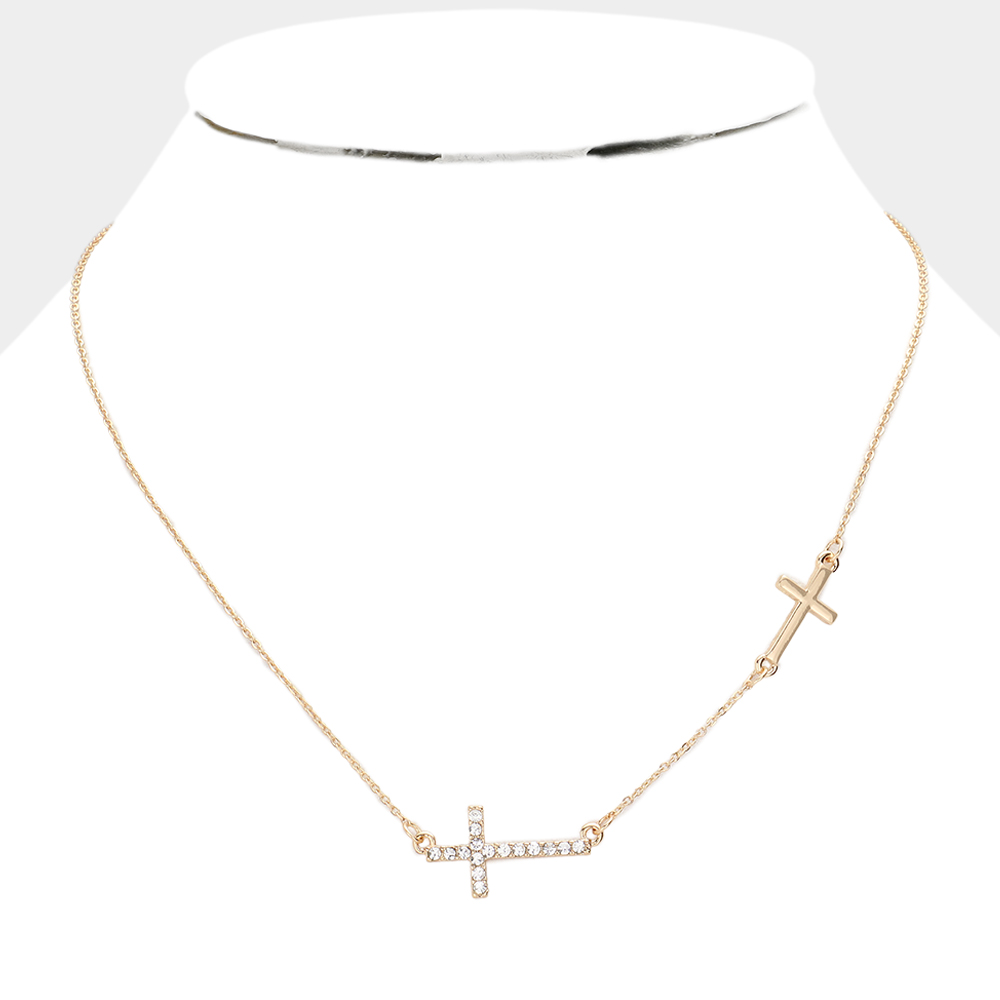 Gold Dipped CZ Embellished Cross Charm Anklet
