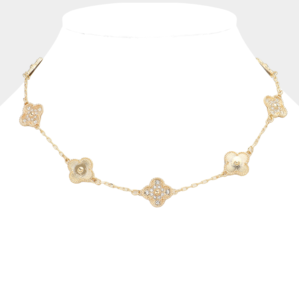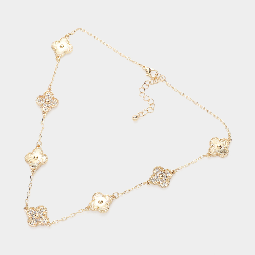 Stone Paved Mearl Quatrefoil Station Necklace