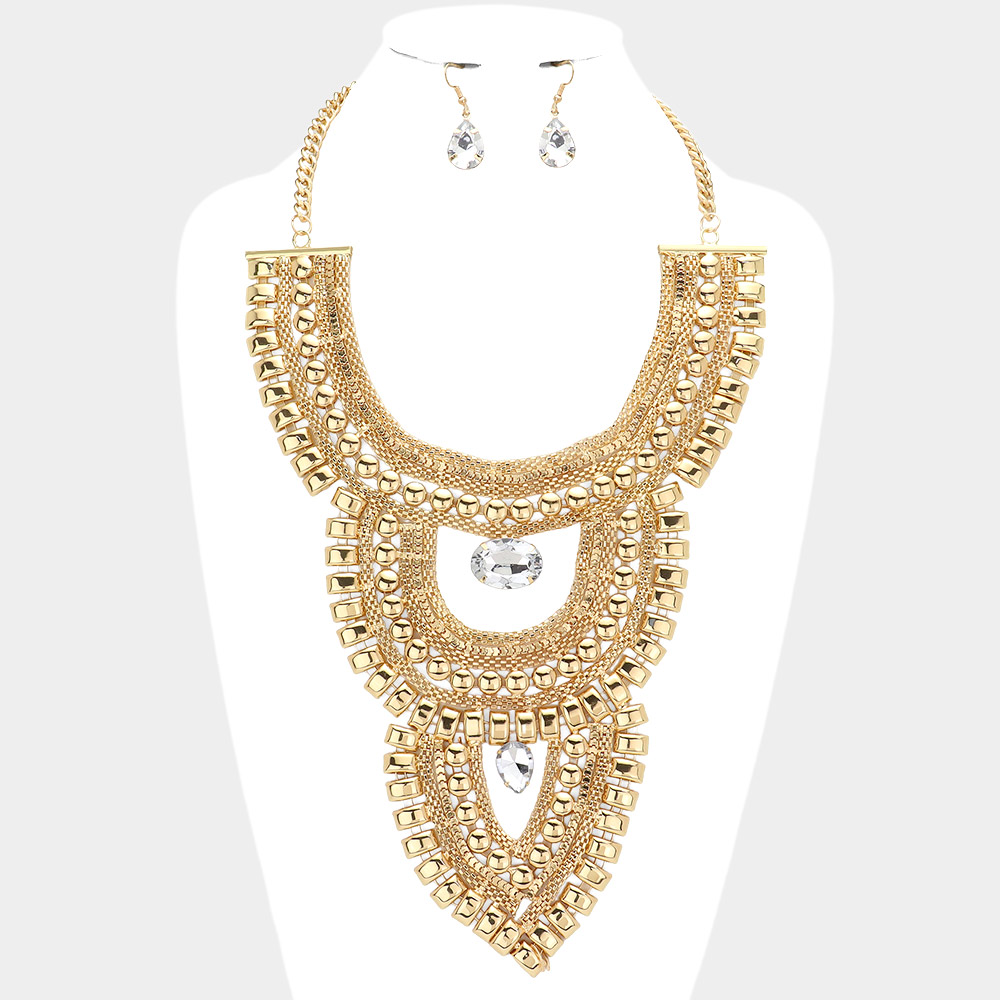Stone Pointed Metal Statement Necklace
