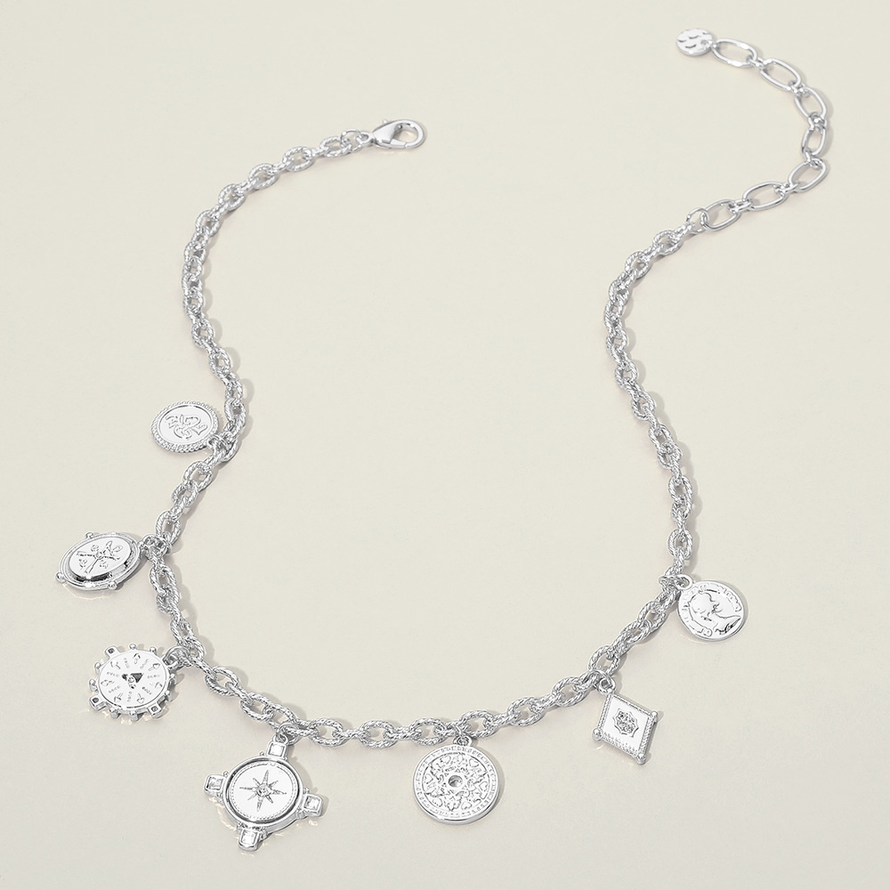 Symbolic Coin Charm Station Necklace Symbolic Coin Charm Station Necklace Symbolic Coin Charm Station Necklace