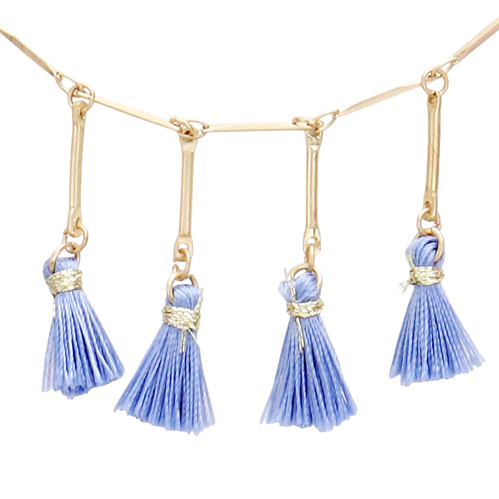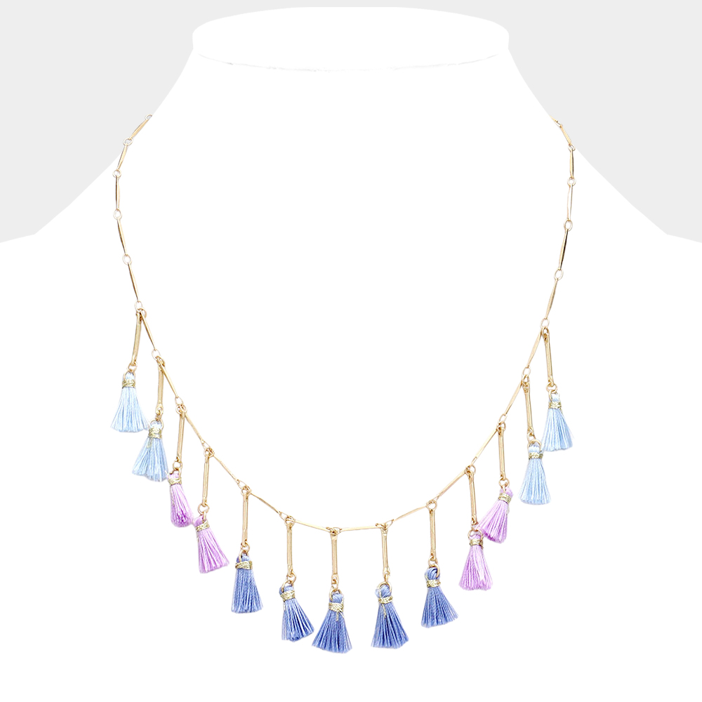 Thread Wrapped Oval Hoop Long Drop Chain Tassel Necklace
