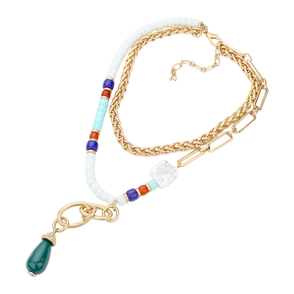 Teardrop Accented Beaded Double Layered Necklace