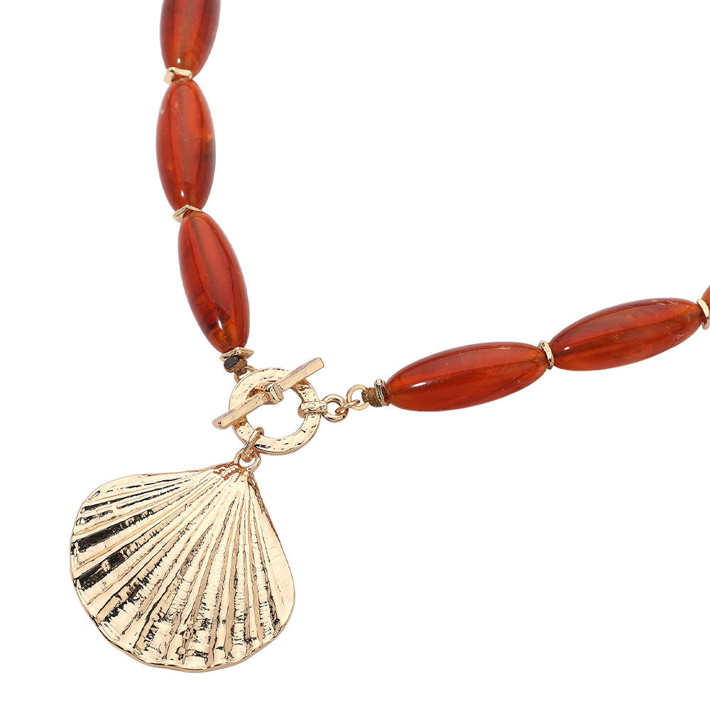 Textured Metal Shell Toggle Pendant Chunky Oval Resin Beaded Statement Necklace