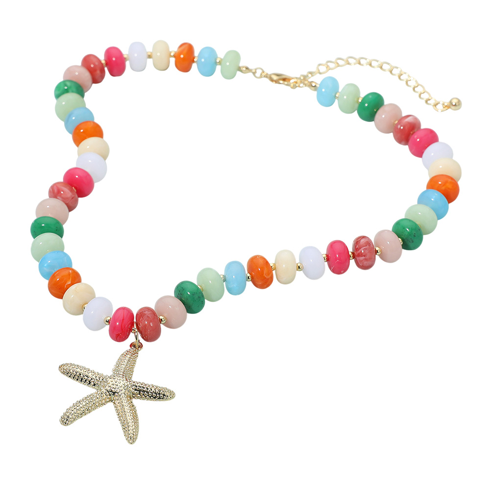 • Playful beaded necklace featuring colorful round beads accented with a textured starfish pendant. A vibrant and stylish accessory perfect for beach outings, summer looks, or adding a fun coastal vibe to everyday wear.