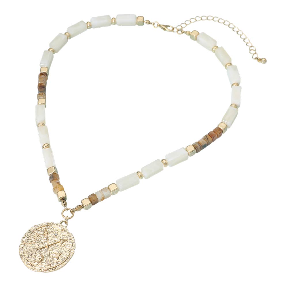 Textured Zodiac Coin Pendant Beaded Necklace