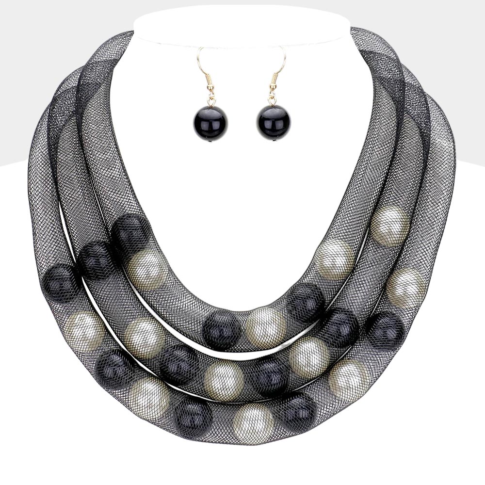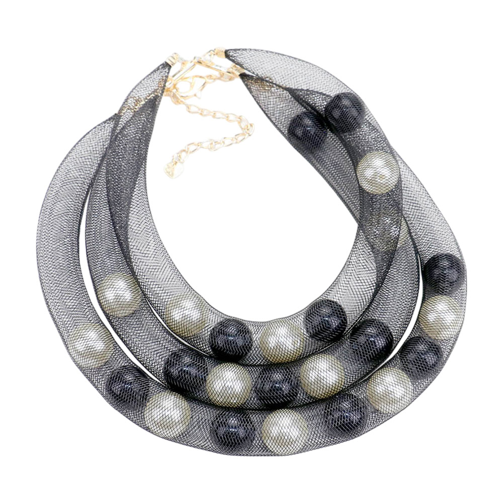 Triple Mesh Tube Pearl Collar Necklace