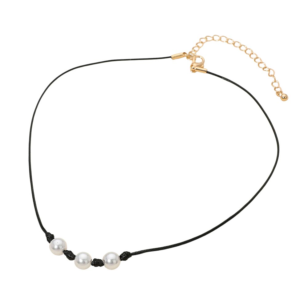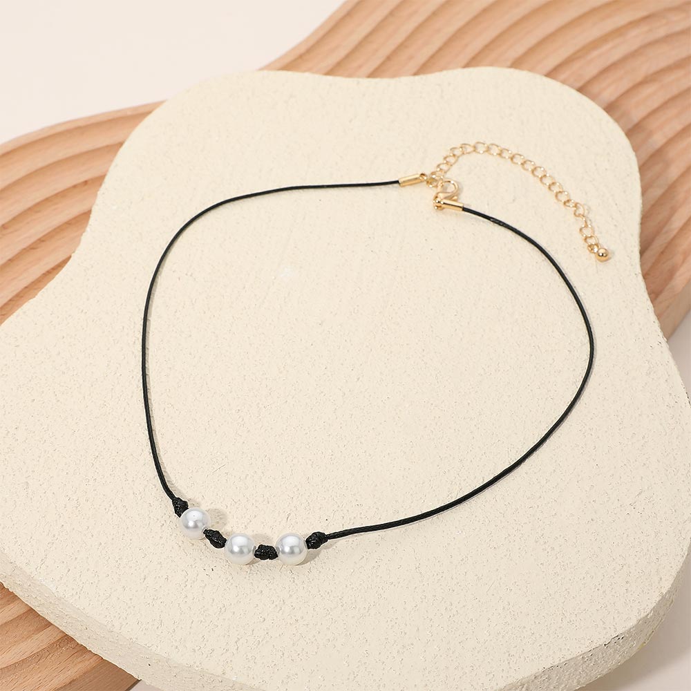 Triple Pearl Beaded Waxed Cord Chain Necklace Triple Pearl Beaded Waxed Cord Chain Necklace Triple Pearl Beaded Waxed Cord Chain Necklace
