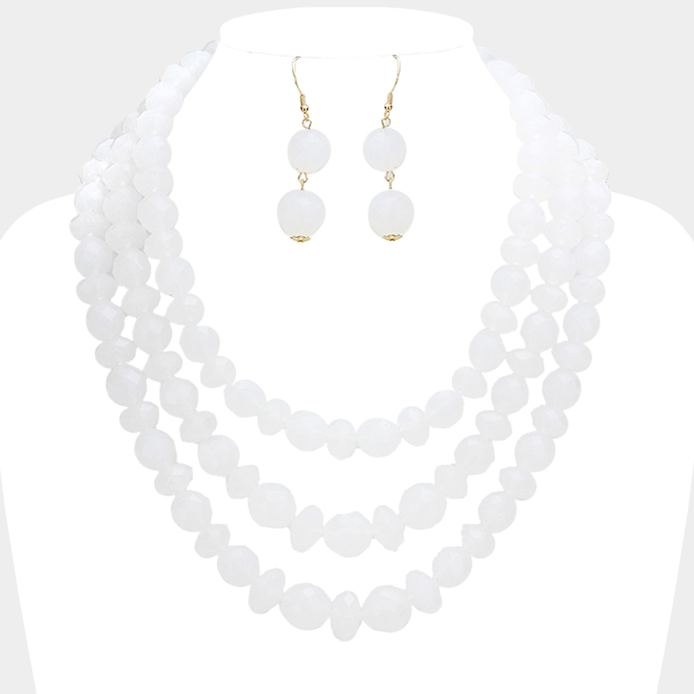 3Rows Faceted Beaded Ball Stretch Bracelet