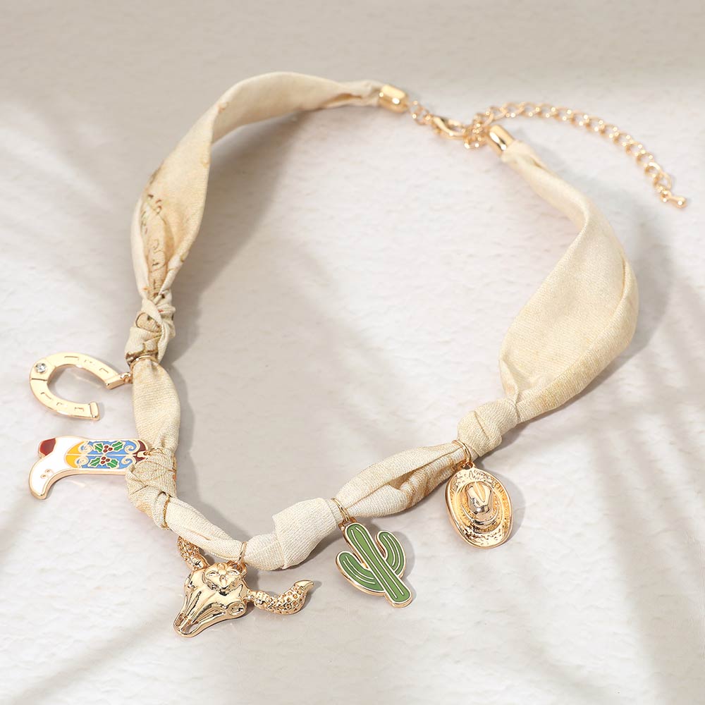Western Steer Head Cactus Horseshoe Cowboy Hat Boot Charm Station Fabric Scarf Necklace Western Steer Head Cactus Horseshoe Cowboy Hat Boot Charm Station Fabric Scarf Necklace