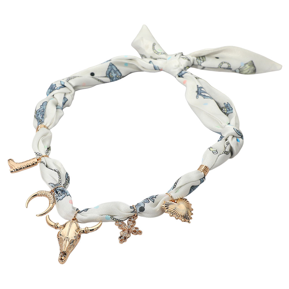 Western Steer Head Cowboy Boot Horseshoe Cross Heart Charm Station Fabric Bandana Scarf Necklace