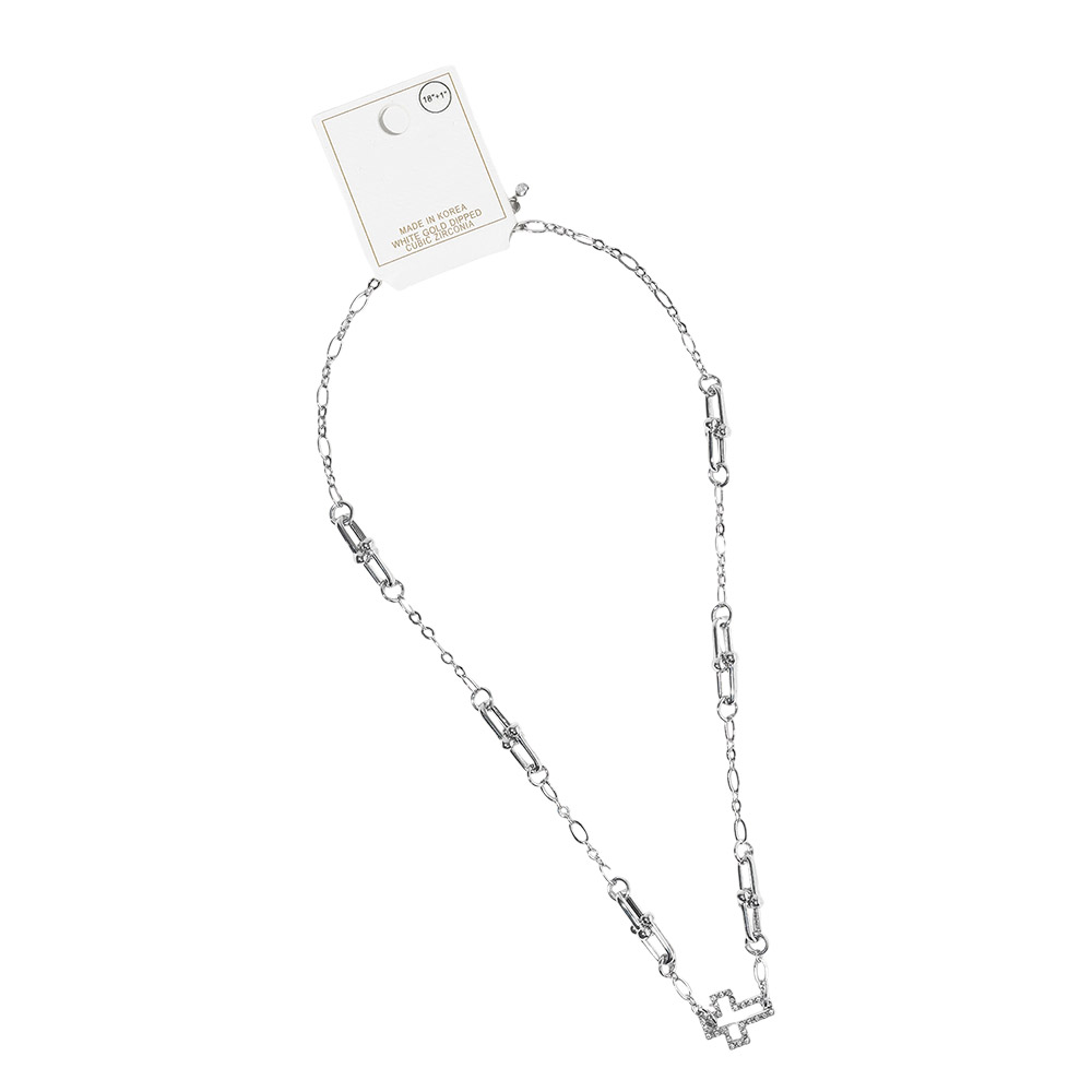 White Gold Dipped CZ Pave Open Cross Pendant Industrial Link Chain Necklace White Gold Dipped CZ Pave Open Cross Pendant Industrial Link Chain Necklace White Gold Dipped CZ Pave Open Cross Pendant Industrial Link Chain Necklace White Gold Dipped CZ Pave Open Cross Pendant Industrial Link Chain Necklace