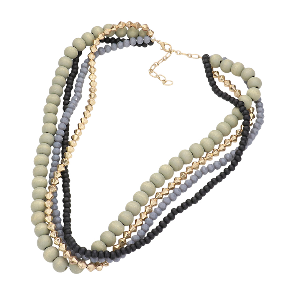 3PCS - Metal Natural Stone Wood Beaded Stretch Multi Layered Bracelets