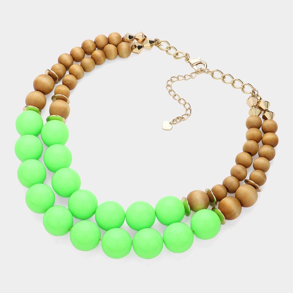 Wood Pointed Hammered Metal Curved Bib Necklace