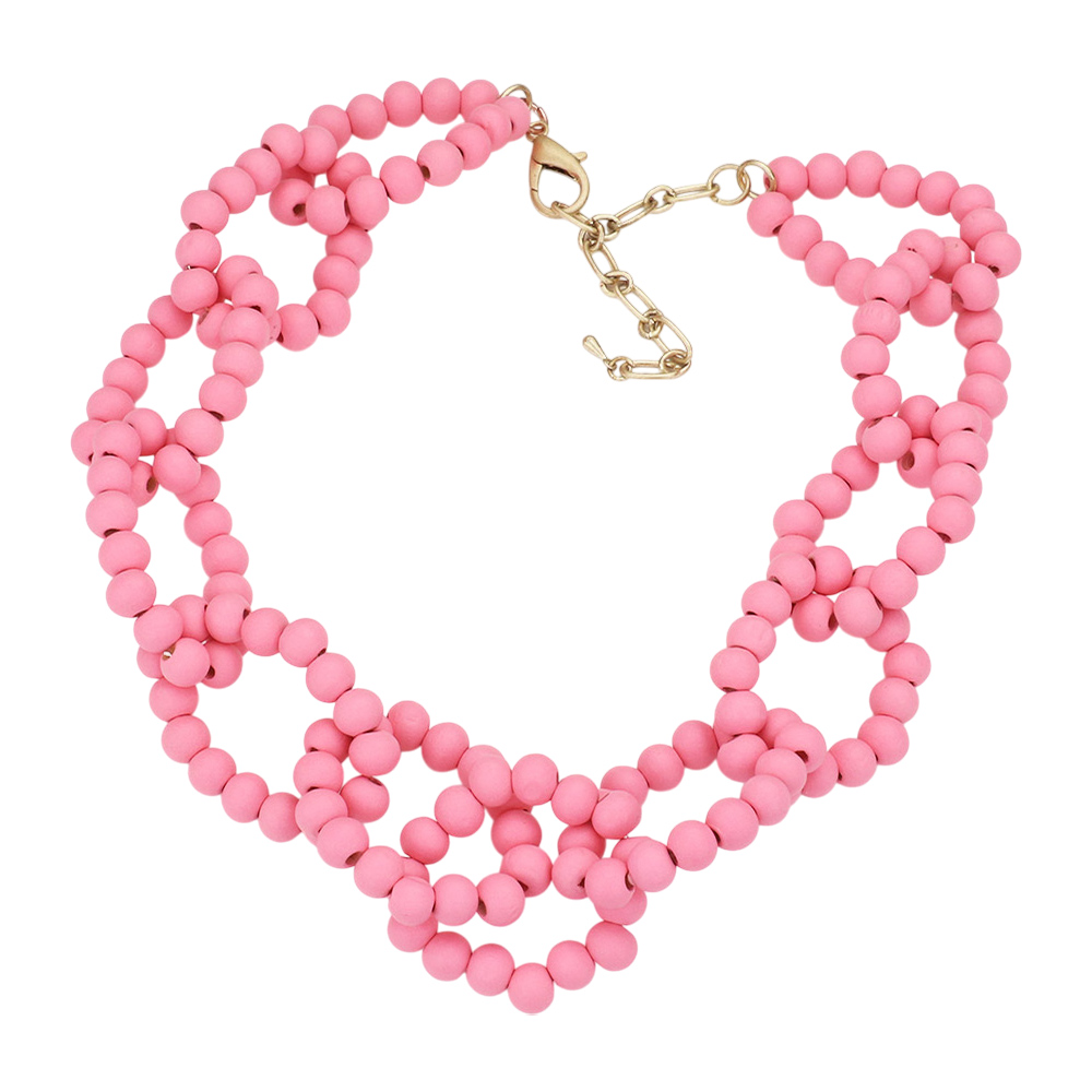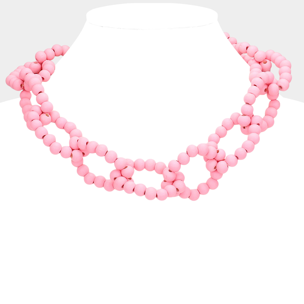 Wooden Beaded Multi Layered Strand Statement Necklace