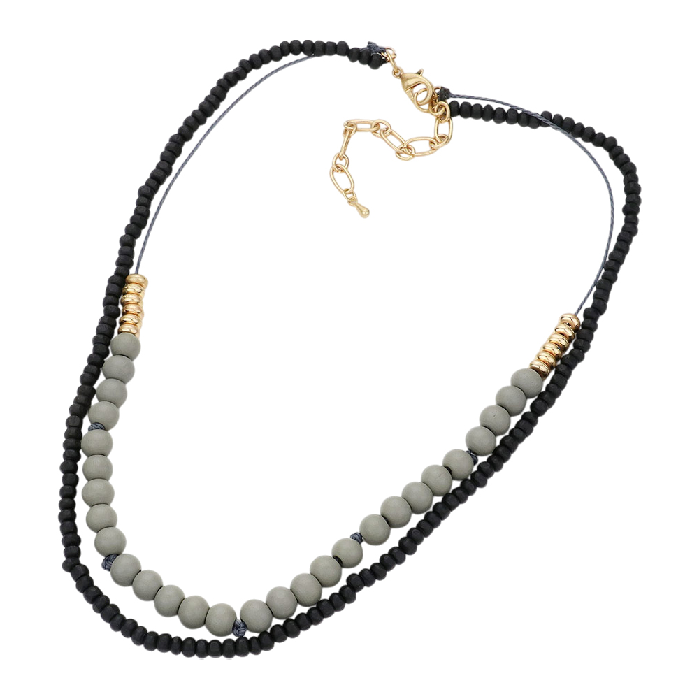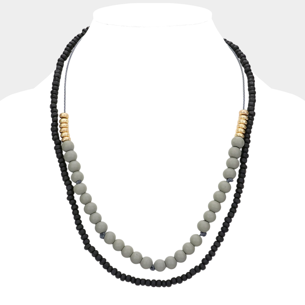 4PCS - Metal Bar Pointed Faceted Beads Wood Ball Beaded Stretch Multi Layered Bracelets