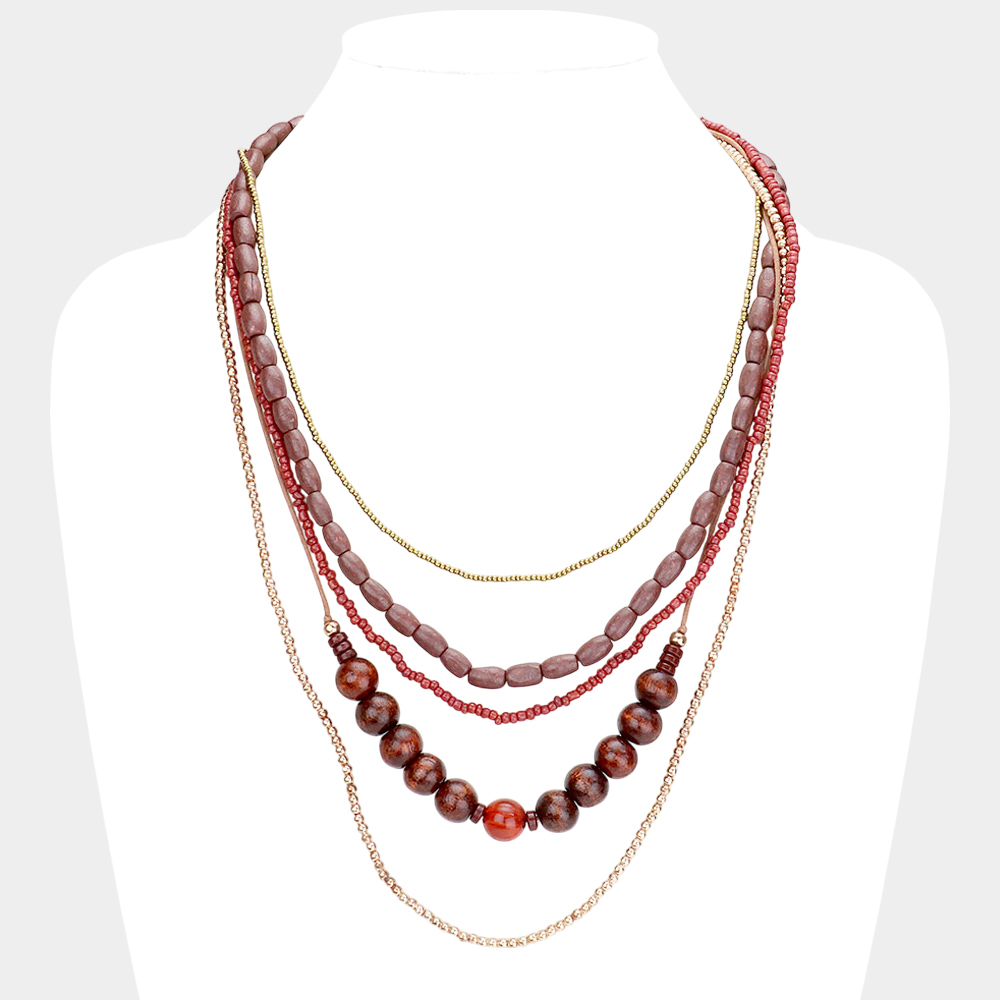 Chunky Geometric Wooden Plate Beaded Stretch Bracelet