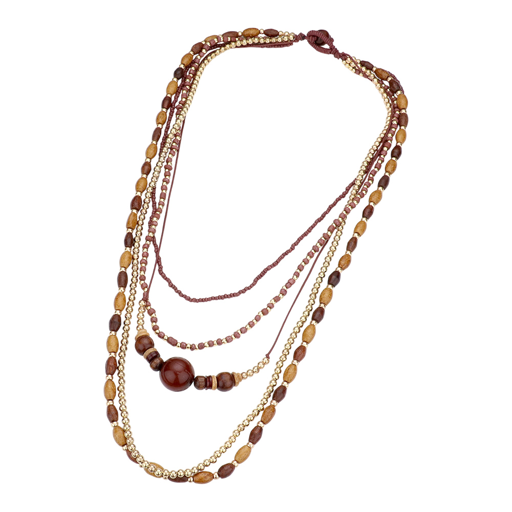 Wood Faceted Beaded Layered Necklace