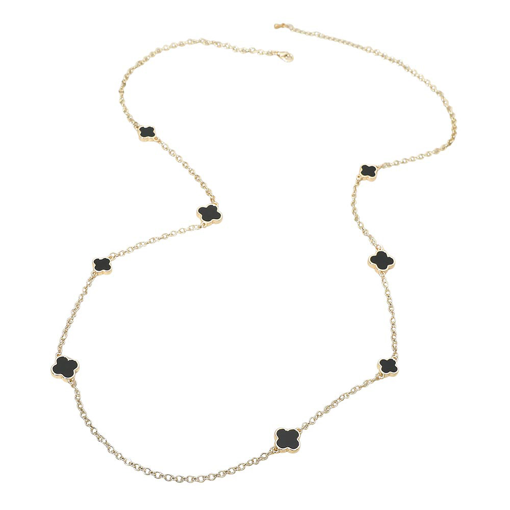 14K Gold Plated Onix Quatrefoil Motif Station Long Necklace