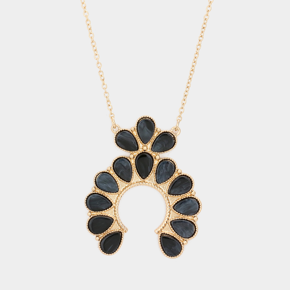 Celluloid Acetate Teardrop Squash Blossom Pendant Long Necklace
