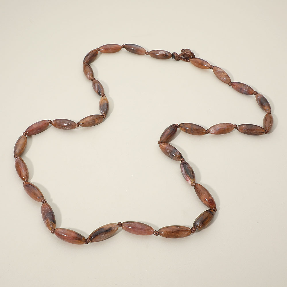 Details • Necklace Size : 46" L • Adjustable • Elegant long beaded necklace featuring smooth oval beads with a polished finish. Designed with an adjustable length for versatile styling, this chic statement piece adds a touch of sophistication and contemporary flair to both casual and dressy looks. • Lead and Nickel Compliant