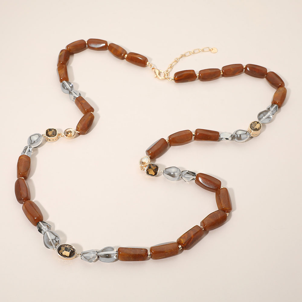Chunky Oval Faceted Stone Marbled Pebble Beaded Long Necklace