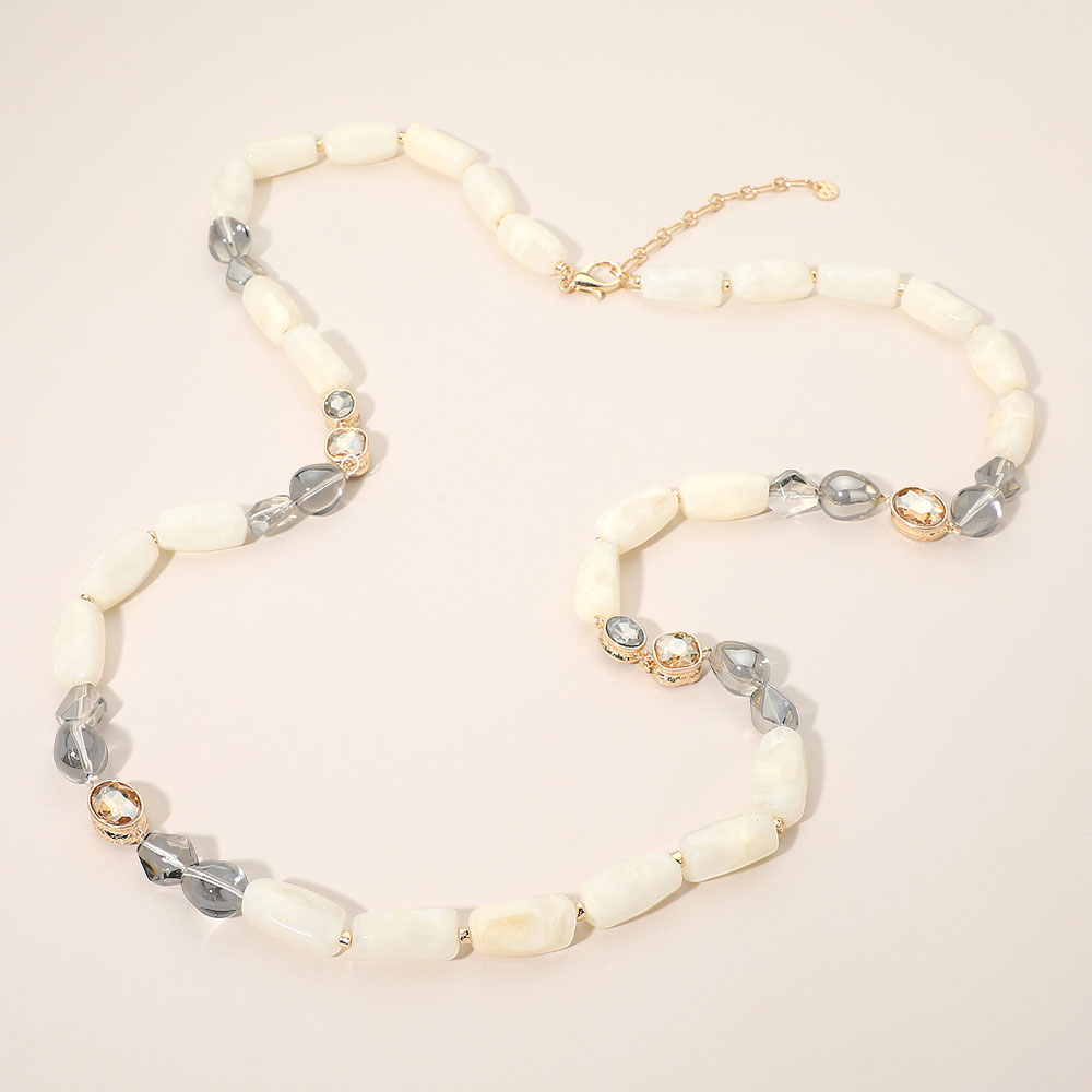 Chunky Oval Faceted Stone Marbled Pebble Beaded Long Necklace
