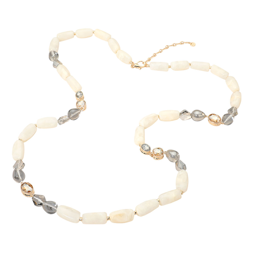 Details • Necklace Size : 42.5" + 4" L • Decor Size : 0.5" L • This long beaded statement necklace features a balanced mix of elongated beads and decorative accents for a refined, eye-catching look. Designed to elevate both casual and polished outfits, it adds texture, movement, and visual interest, making it a versatile choice for boutique and fashion-forward jewelry assortments. • Lead and Nickel Compliant