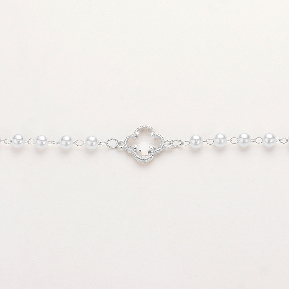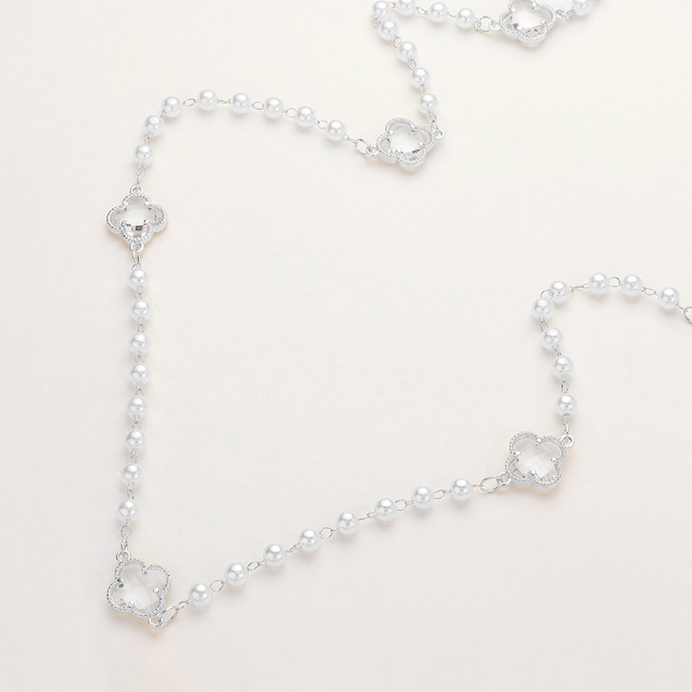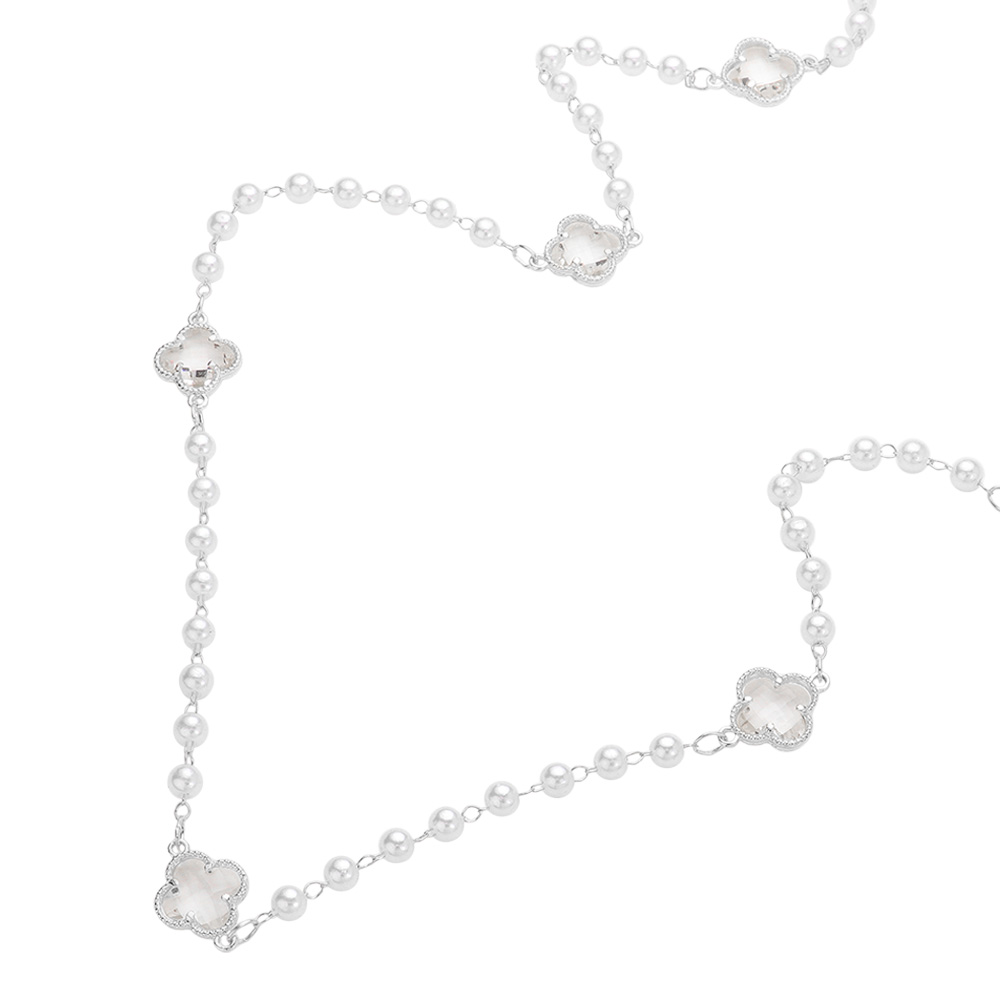 Clear Quatrefoil Cluster Station Pearl Long Necklace