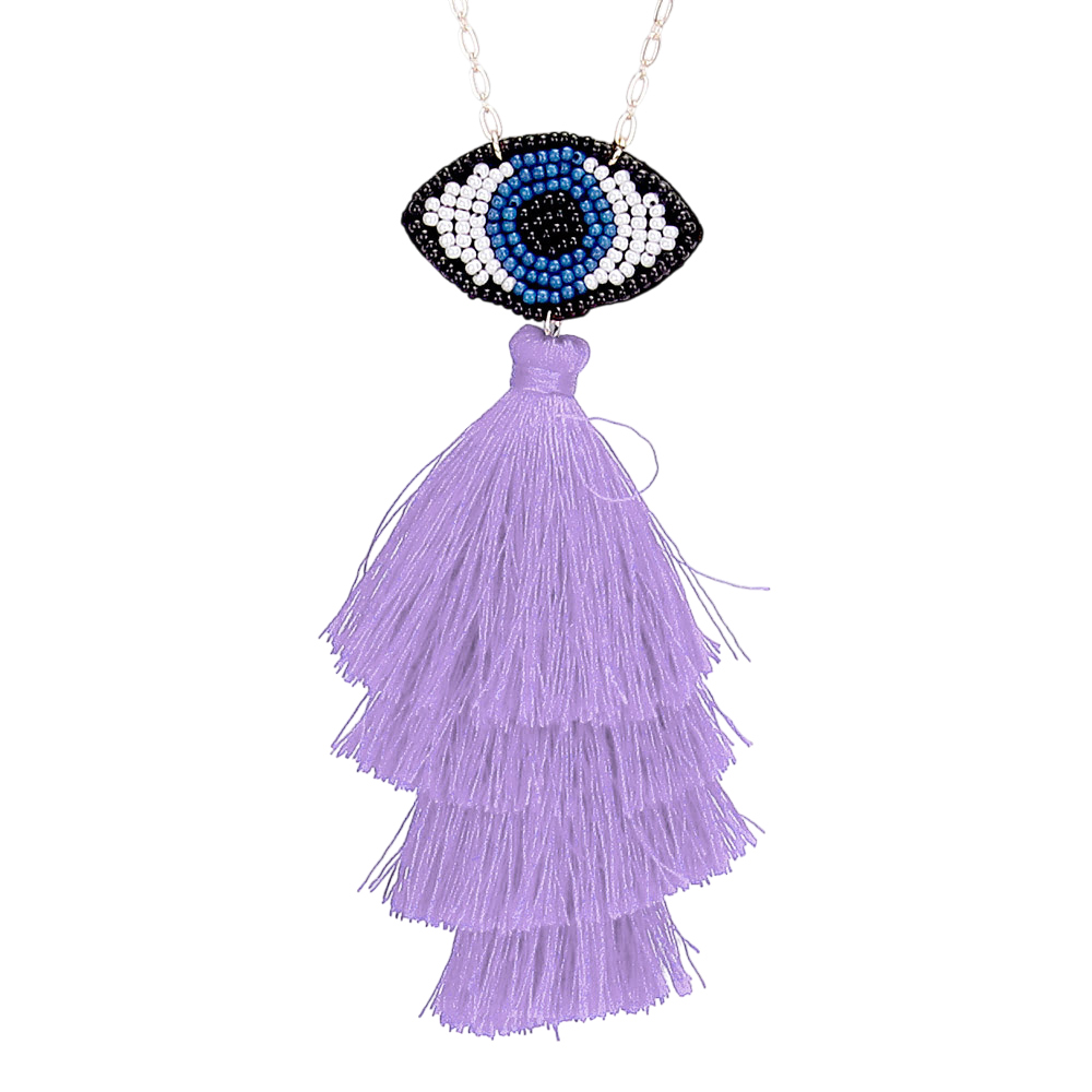 Rhinestone Evil Eye Heart Horseshoe Accented Metal Round Pendant Faceted Beaded Necklace