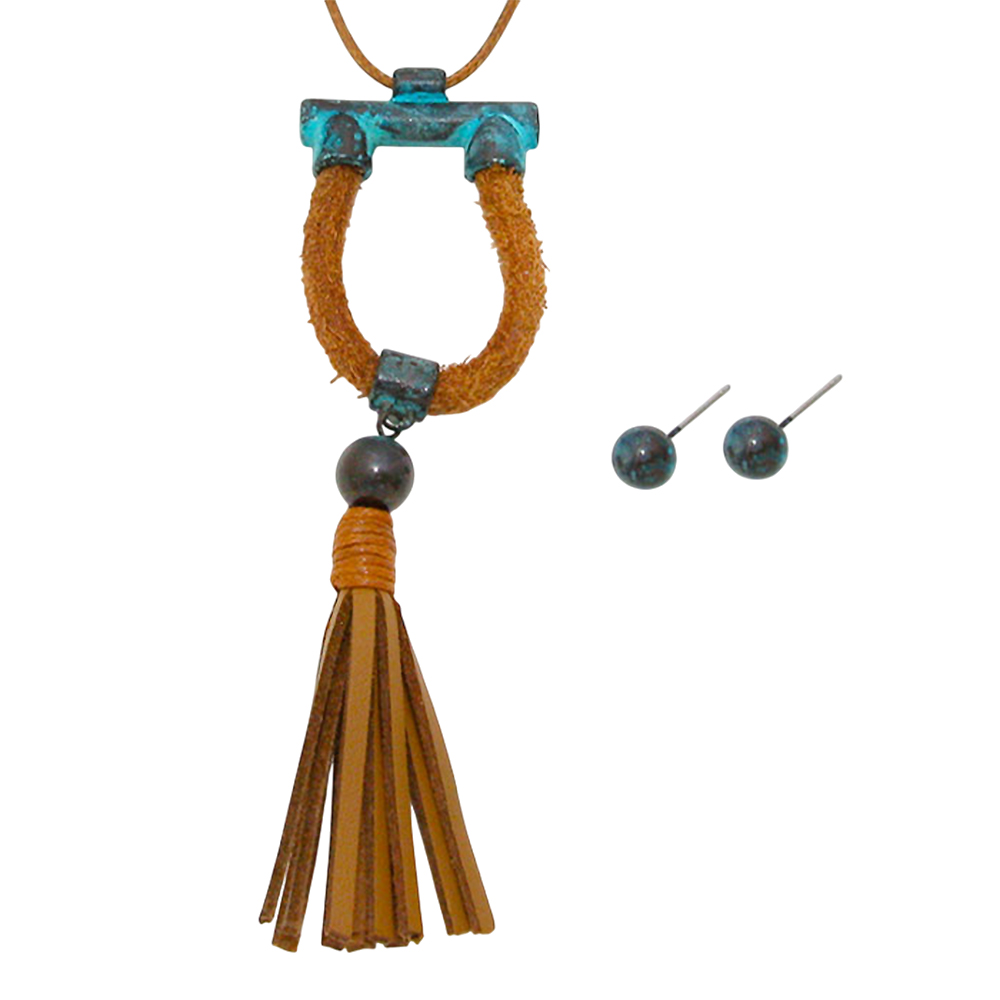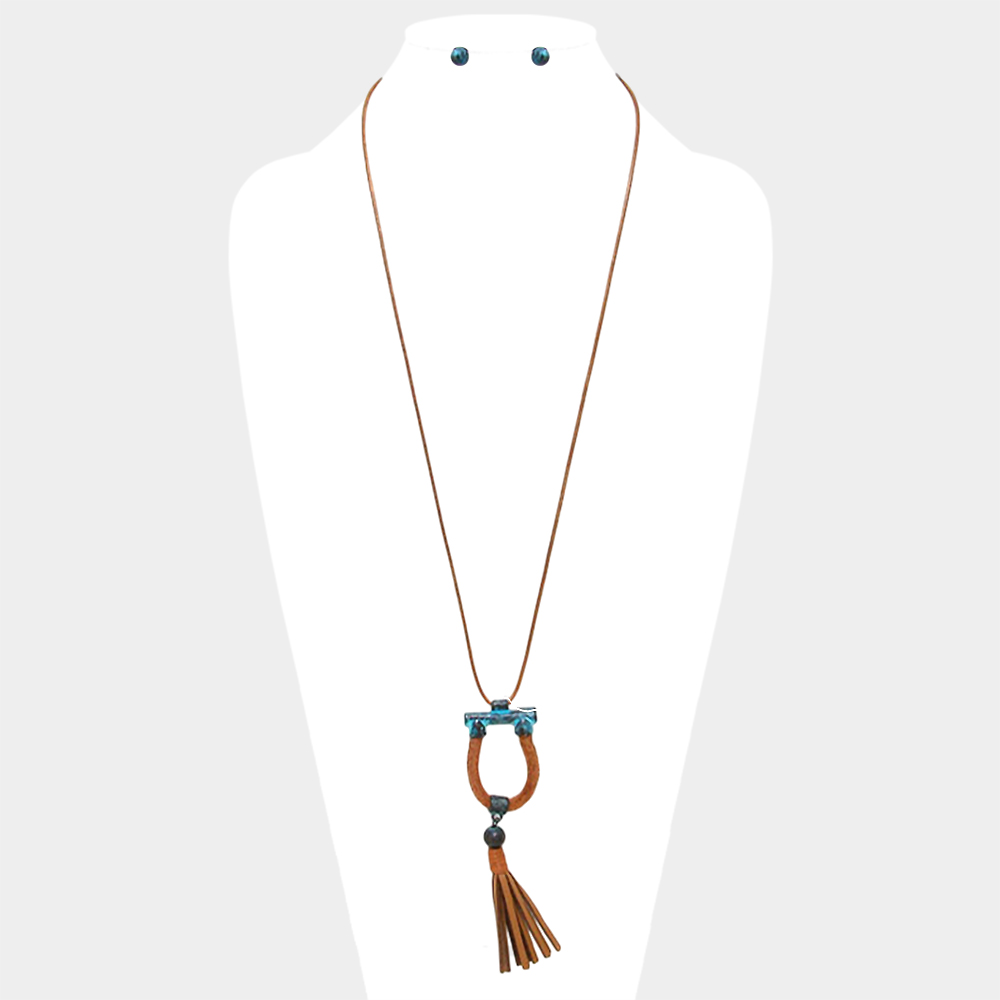 Faux leather tassel drop long necklace