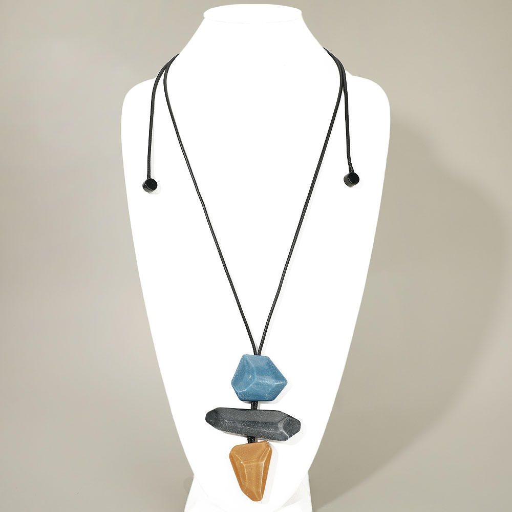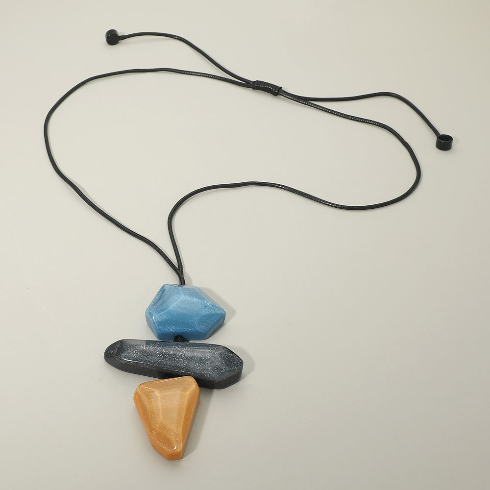 Geometric Stackable Resin Pendant Adjustable Long Necklace