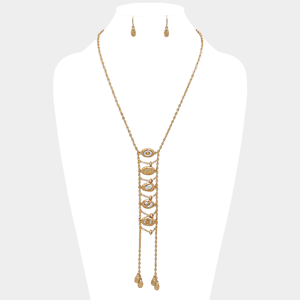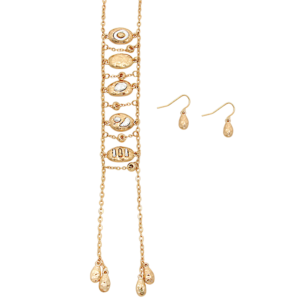 Hammered Metal Disc Double Strand Long Y-Necklace