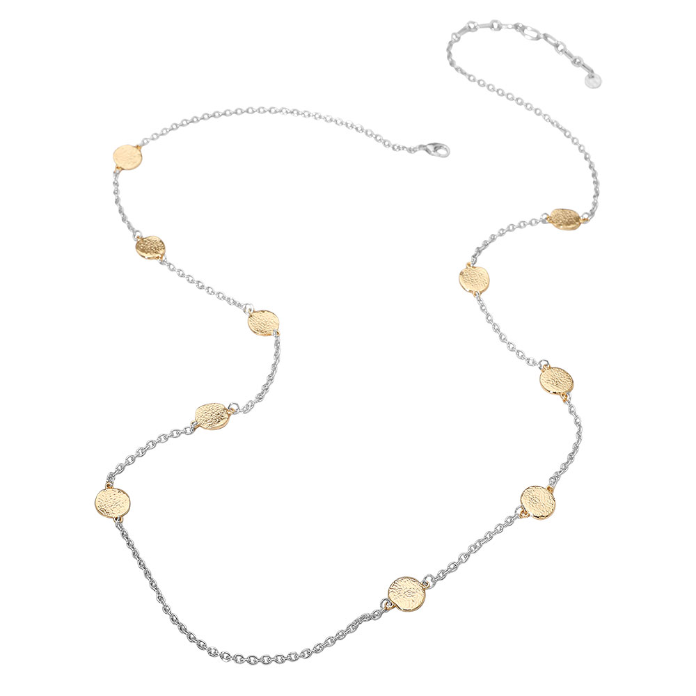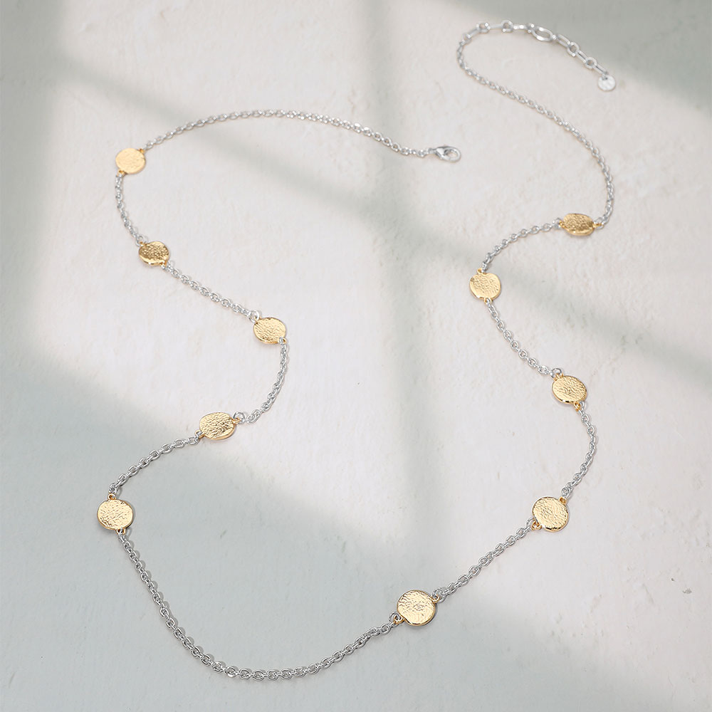 Hammered Metal Disc Station Long Necklace