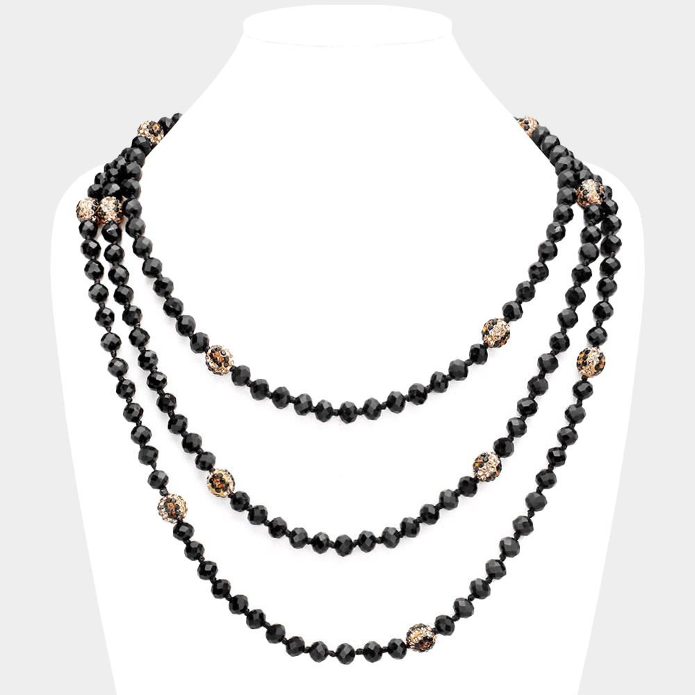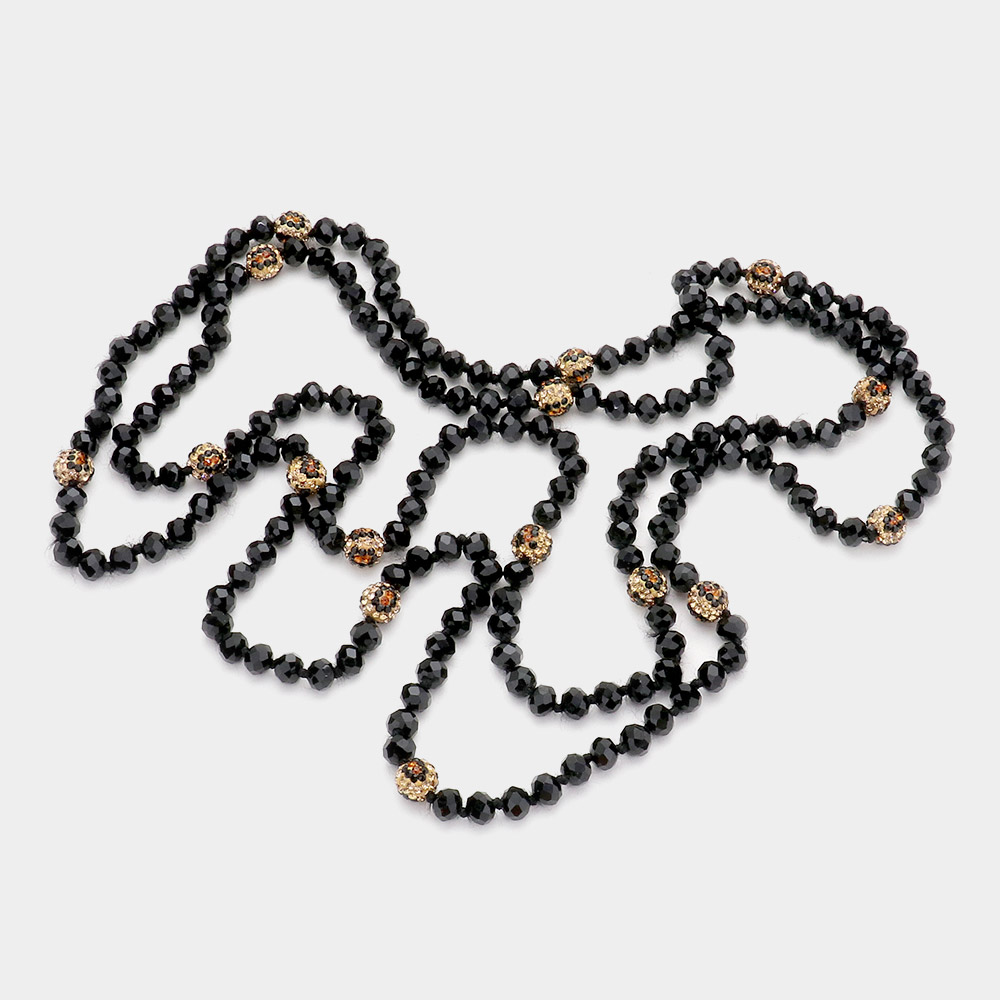 Leopard Pattern Shamballa Ball Accented Faceted Bead Long Necklace