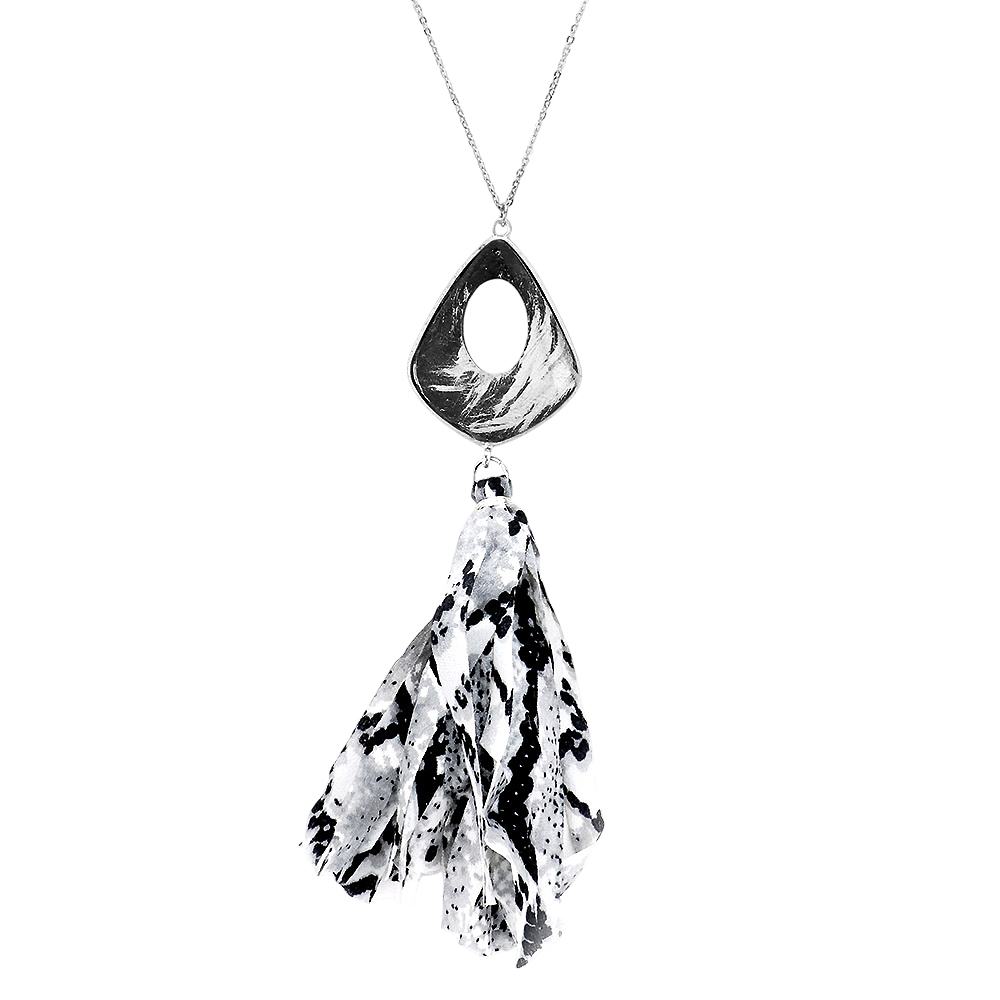 Multi Pattern Fabric Tassel Pendant Long Necklace