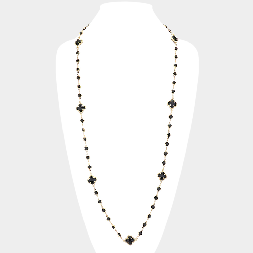 3PCS - Semi Precious Quatrefoil Metal Band Mixed Rings